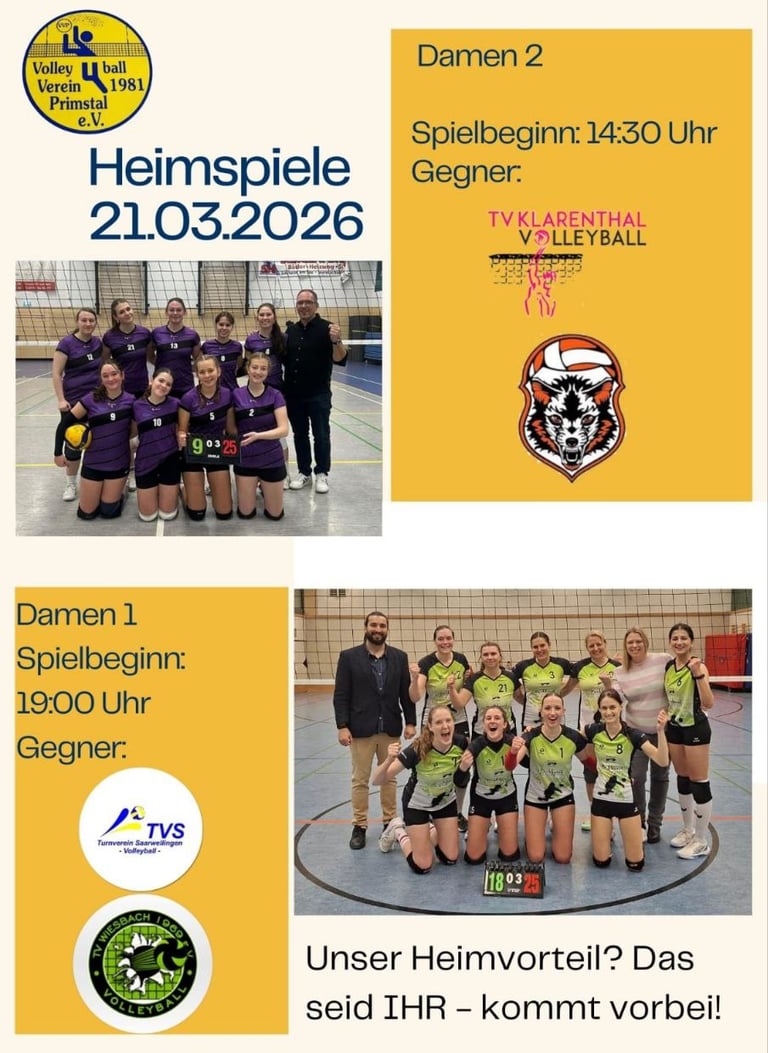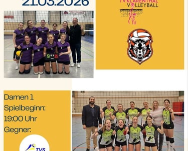 Unser nächstes Heimspiel findet am 21.03.2026 ab 14:30 Uhr mit Team 2 und ab 19:00 Uhr mit Team 1 statt. Kommt uns anfeuern! Wir zählen auf eure Unterstützung!